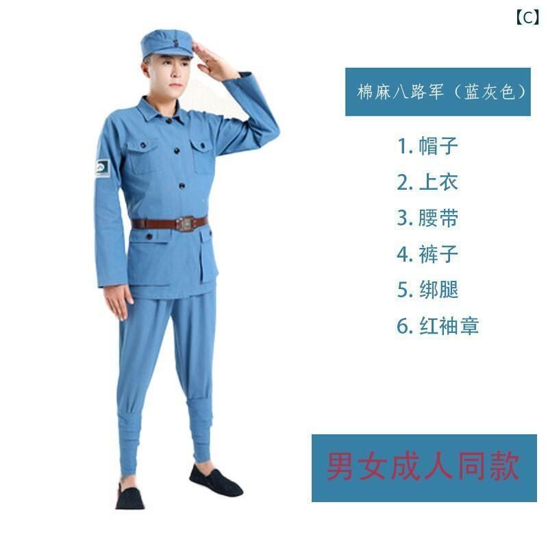 舞台衣装 子供 大人 男女兼用 綿麻素材 レトロ 軍服風 演劇 発表会 ダンス イベント コスプレ 上下セット 帽子 ベルト付き 快適 通気性 学校行事 クラシック