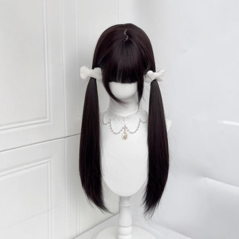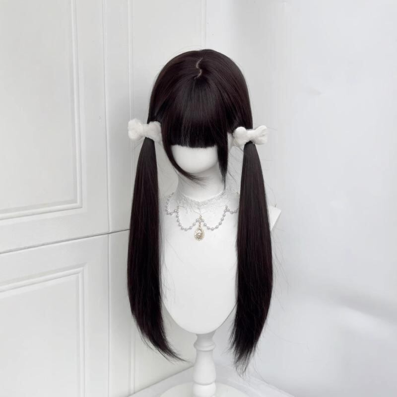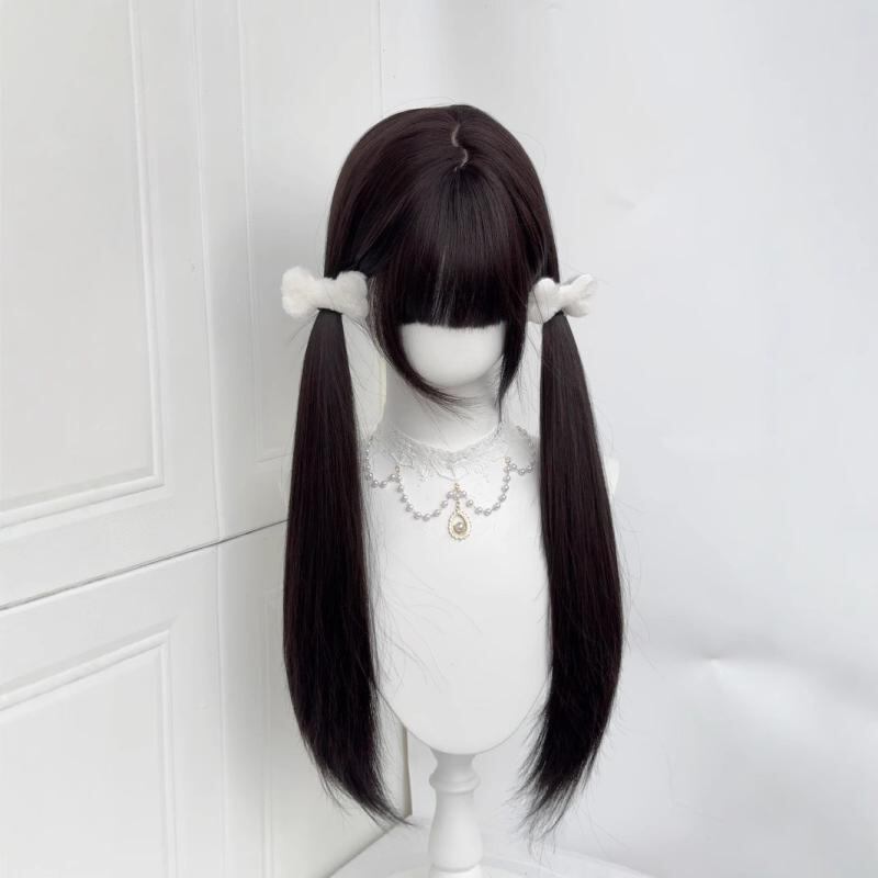 ウィッグ レディース ロング ストレート ブラックブラウン 60cm ぱっつん前髪 小顔効果 ナチュラル 自然な肌馴染み ロリータ JK 韓国風 学生風 高温耐熱ファイバー マシンメイド