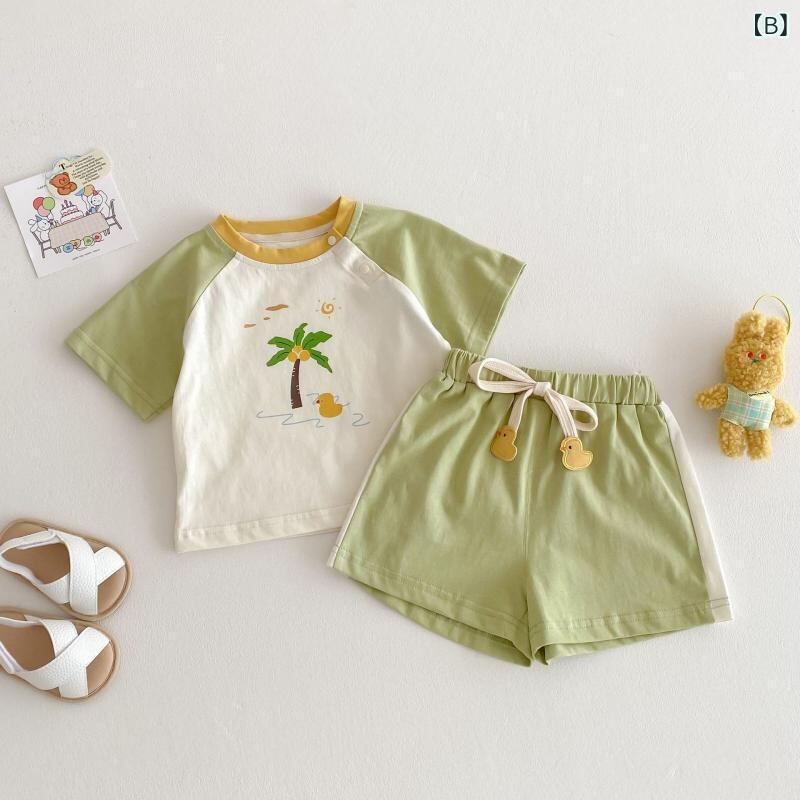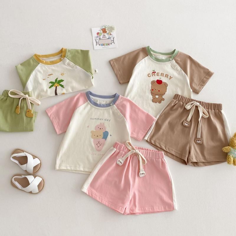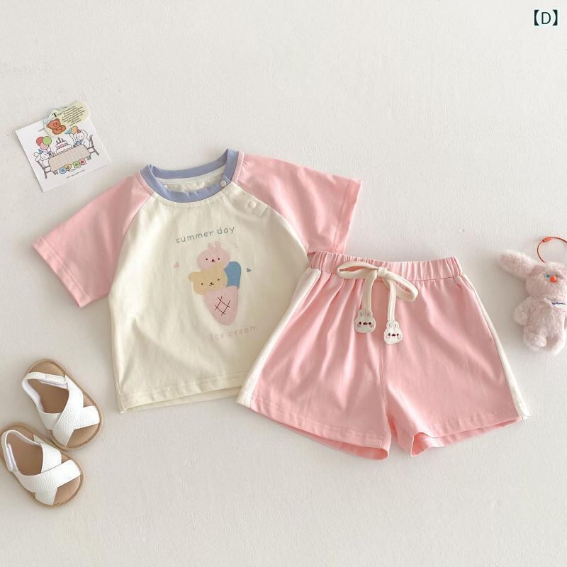 セットアップ キッズ 女の子 クマ柄 半袖 Tシャツ ショートパンツ 綿素材 薄手 涼しい 肌触り抜群 快適 カジュアル 普段使い お出かけ ルームウェア かわいい おしゃれ 韓国風 夏服 ツーピース ベア柄