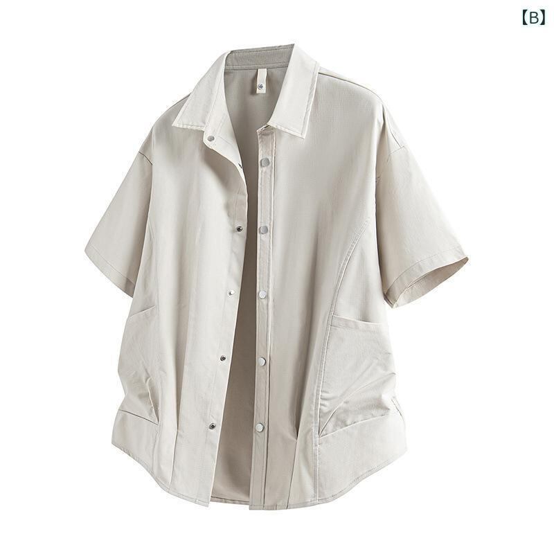 シャツ メンズ 半袖 無地 開襟 オープンカラー ゆったり ルーズフィット ビッグシルエット 薄手 軽量 通気性 ポリエステル 速乾 イージーケア 夏 普段使い カジュアル リラックス トップス