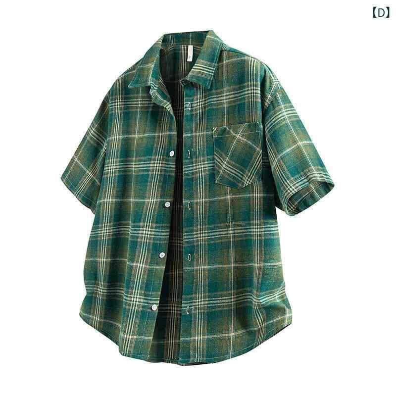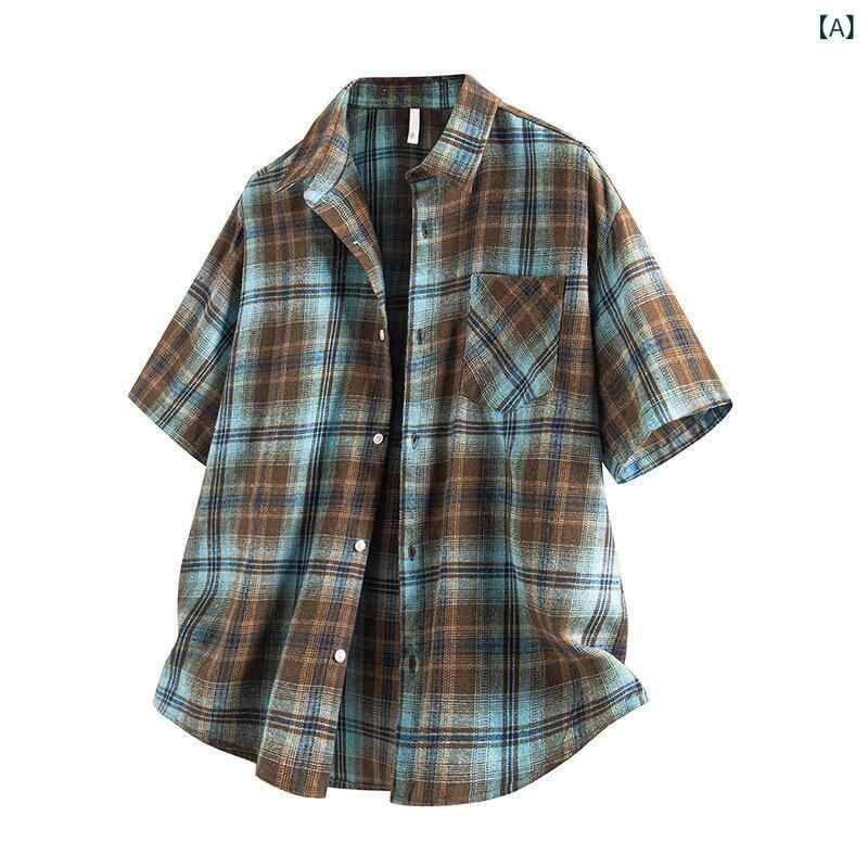 シャツ メンズ 半袖 チェック柄 ゆったり ルーズフィット アメリカンカジュアル ストリート系 ティーン 学生 トップス 綿混 ポリエステル ウォッシャブル イージーケア シワになりにくい 普段使い 羽織り 夏