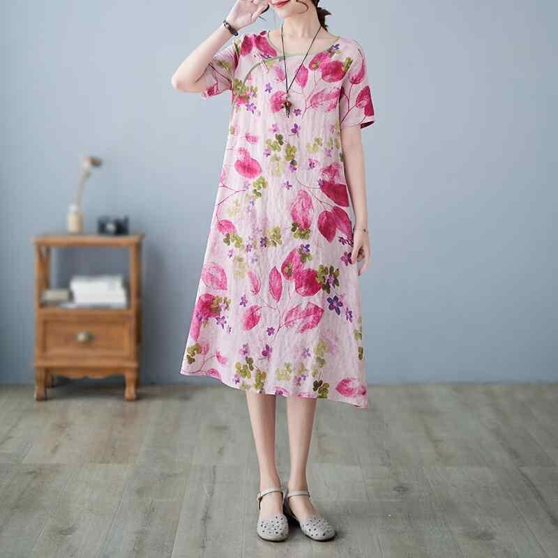 ワンピース レディース 改良旗袍 モダンチャイナドレス レトロ 上品 花柄プリント アクリル素材 綿麻調 Aライン ミモレ丈 ラウンドネック 長袖 大きいサイズ ゆったり 通勤 オフィス カジュアル ローズレッド 赤系