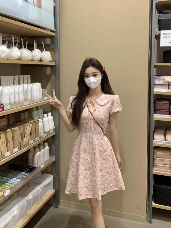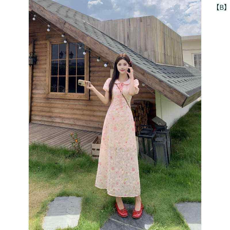 ワンピース レディース 大きいサイズ チャイナ風 花柄 シフォン 襟付き Aライン ウエストマーク 切り替え きれいめ エレガント 通勤 オフィス 細見え 3分袖 半袖 夏 カジュアル