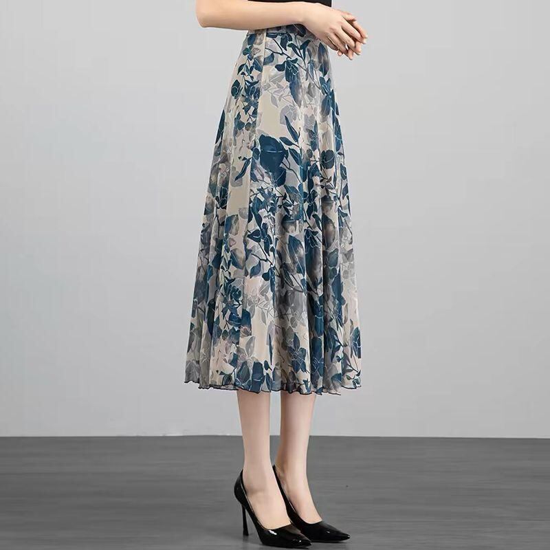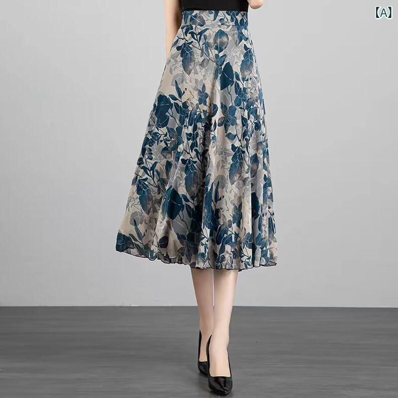 スカート レディース シフォン 花柄 プリント フレアスカート Aライン ミモレ丈 ハイウエスト 体型カバー 着痩せ スタイルアップ 大きいサイズ対応 上品 きれいめ オフィス 通勤 大人カジュアル ダークグリーン
