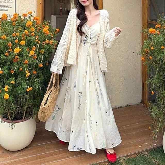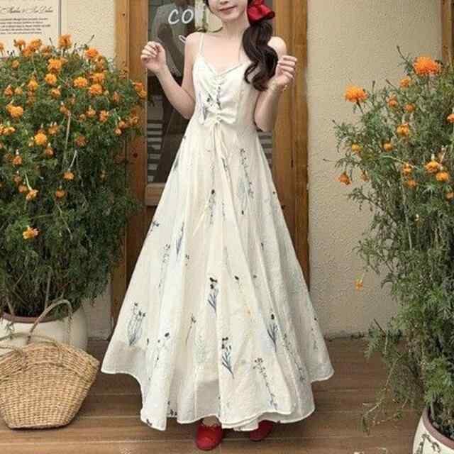 ワンピース レディース 大きいサイズ ゆったり フレンチ レトロ プリント キャミソールワンピース 洋ナシ体型カバー お腹カバー 細見え Vネック ノースリーブ ミモレ丈 ポリエステル 大人かわいい