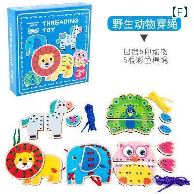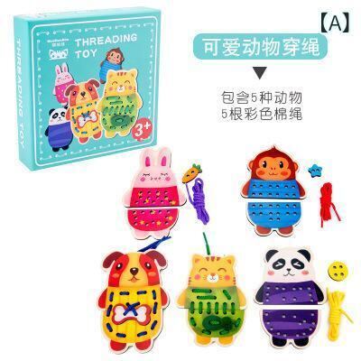 知育玩具 キッズ 子供用 木製 かわいい 動物 着せ替え ひも通し パズル ブロック 積み木 ゲーム 指先 発達 思考力 集中力 創造力 室内遊び おうち時間