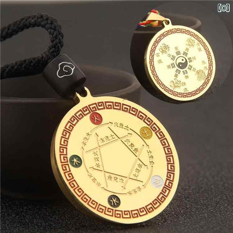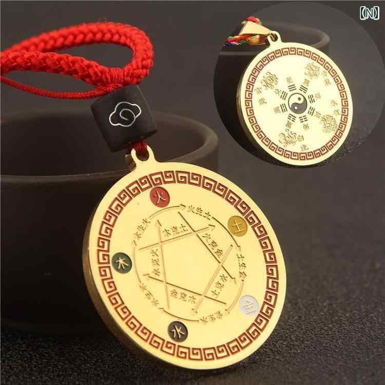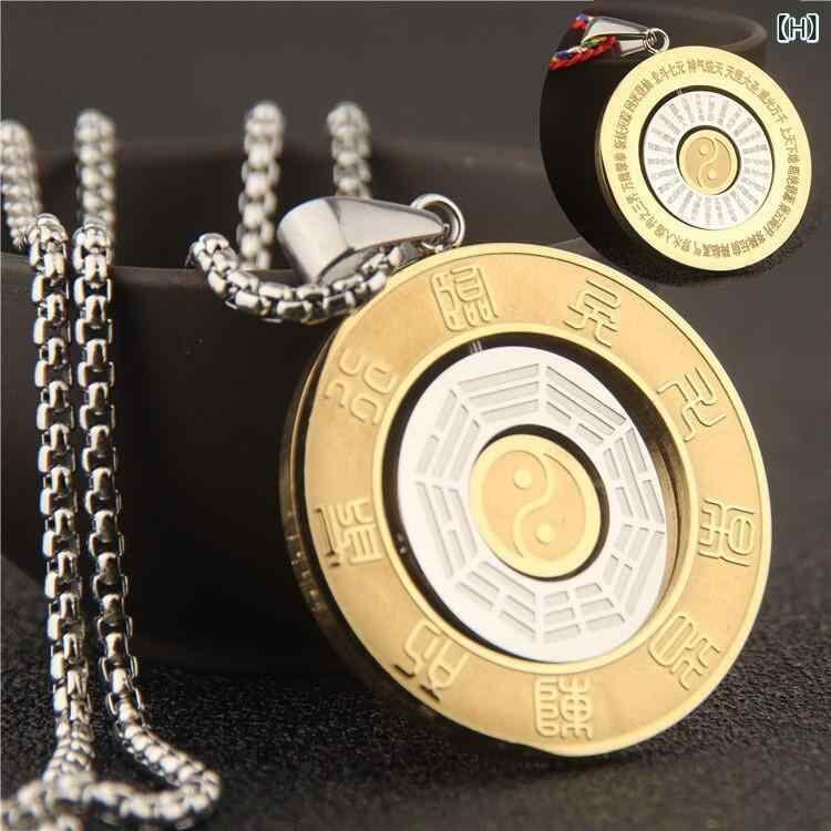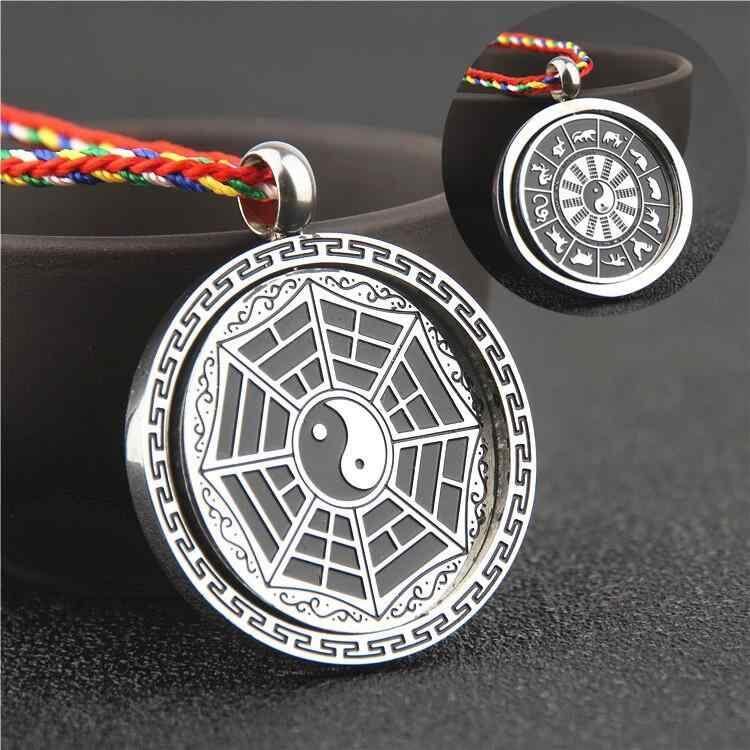 ネックレス メンズ レディース 兼用 九宮八卦 太極図 五行 ペンダント お守り 護符 ステンレス製 レトロ エスニック 開運 ファッションアクセサリー