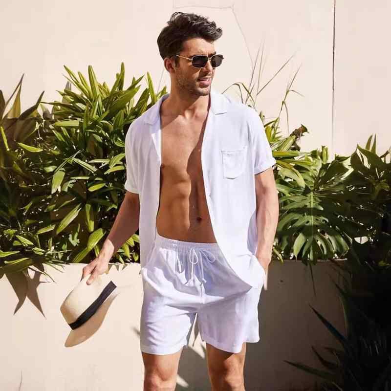 セットアップ メンズ 綿麻 リネン 半袖 開襟シャツ ショートパンツ ゆったり ルーズフィット 薄手 軽量 通気性 吸湿速乾 カジュアル 普段使い 夏 レジャー アウトドア