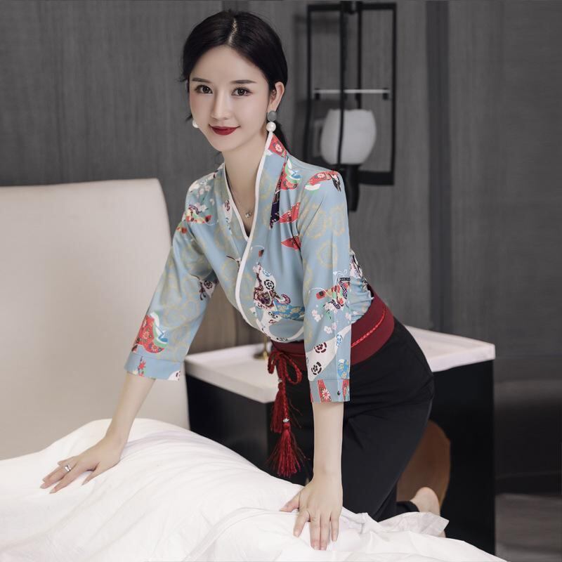 ユニフォーム レディース 女性用 美容師 エステティシャン セラピスト 施術服 制服 エステサロン スパ フットケア サウナ 吸湿速乾 ポリエステル 上下セット 半袖 七分袖 ホワイト ブラック グリーン