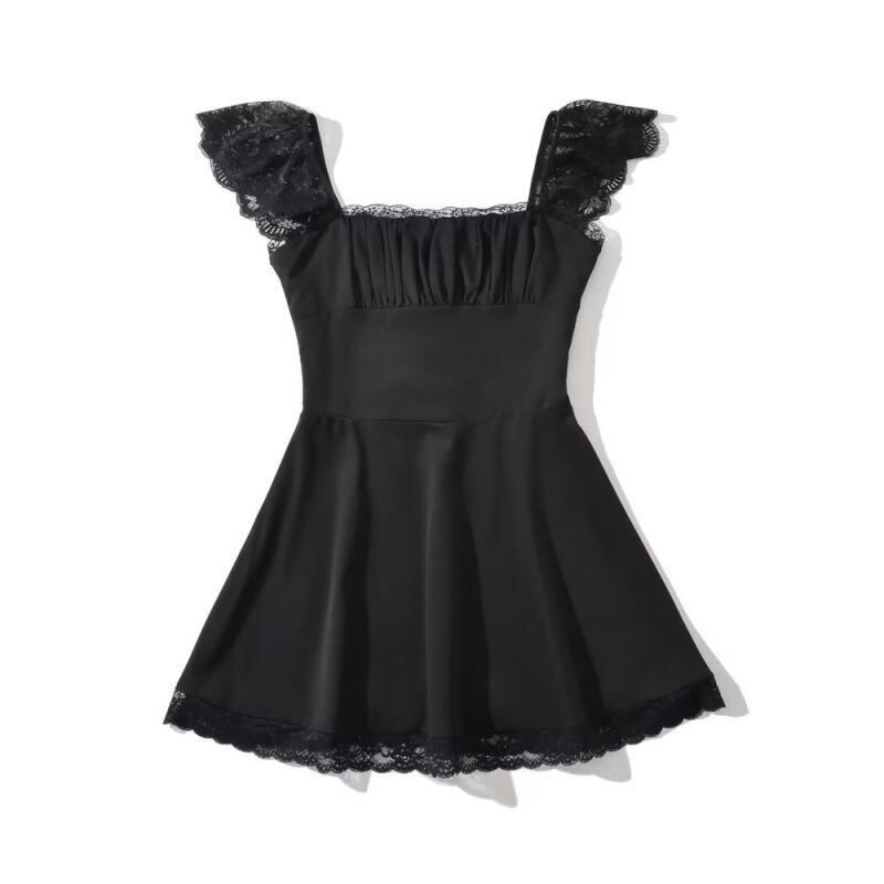 ワンピース レディース 秋 冬 欧米風 通勤スタイル レース 切替 プルオーバー ノースリーブ Uネック ショート丈 ミニドレス ポリエステル ホワイト ブラック