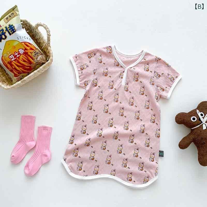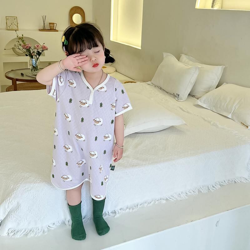 パジャマ キッズ 女の子 ベビー 夏用 綿100% コットン ルームウェア ナイトドレス ネグリジェ バスローブ ガウン かわいい プリント 柔らかい 快適 韓国ファッション 部屋着 寝間着
