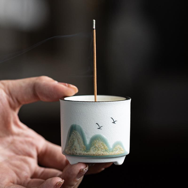 香炉 線香立て 遠山 デザイン 陶器製 おしゃれ 小型 室内用 家庭用 自宅用 茶室 リビング 玄関 書斎 モダン 和風 スタイリッシュ 白檀 沈香 アロマ リラックス 癒し