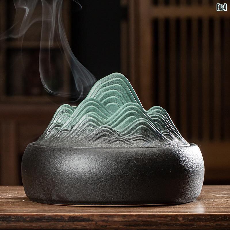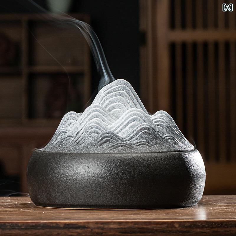 香炉 蚊遣り器 大型 陶器製 室内用 お香立て 蚊取り線香ホルダー 山水画デザイン 水墨画風 和モダン 癒し リラックス おしゃれ 家庭用 スティック香 コーン香 巻き線香対応 | cybercart