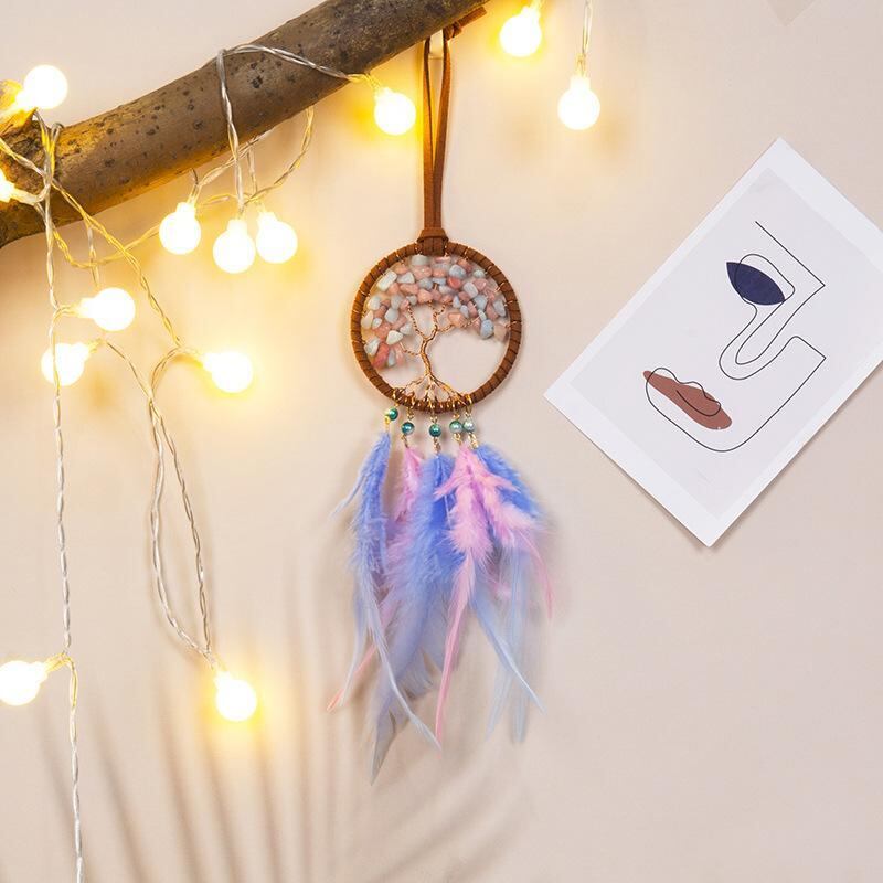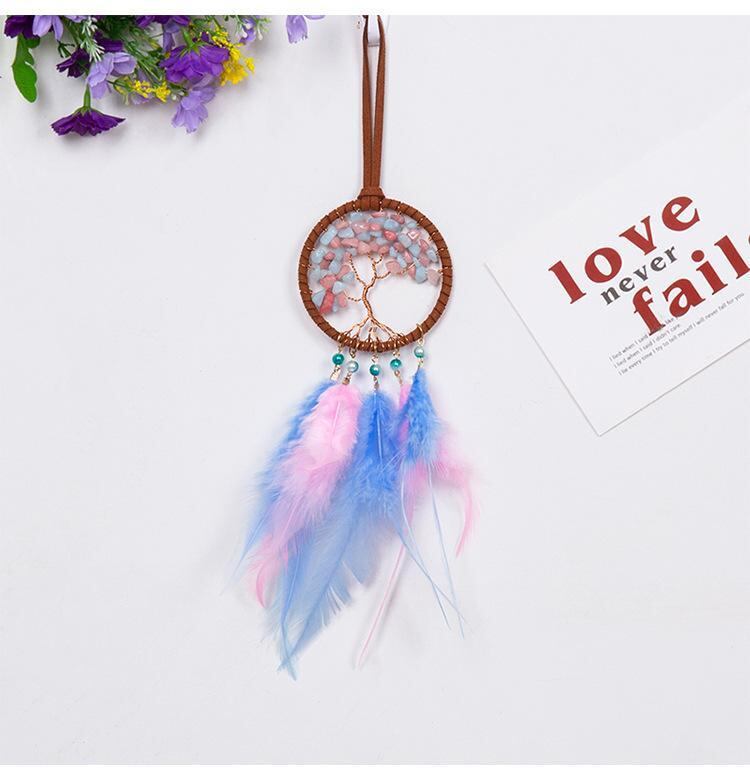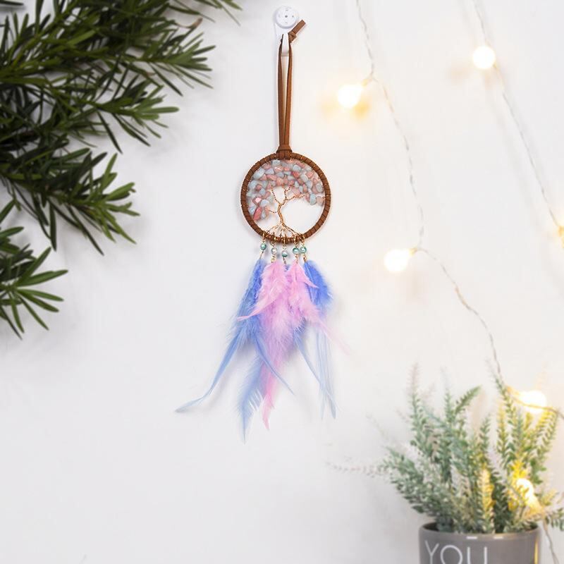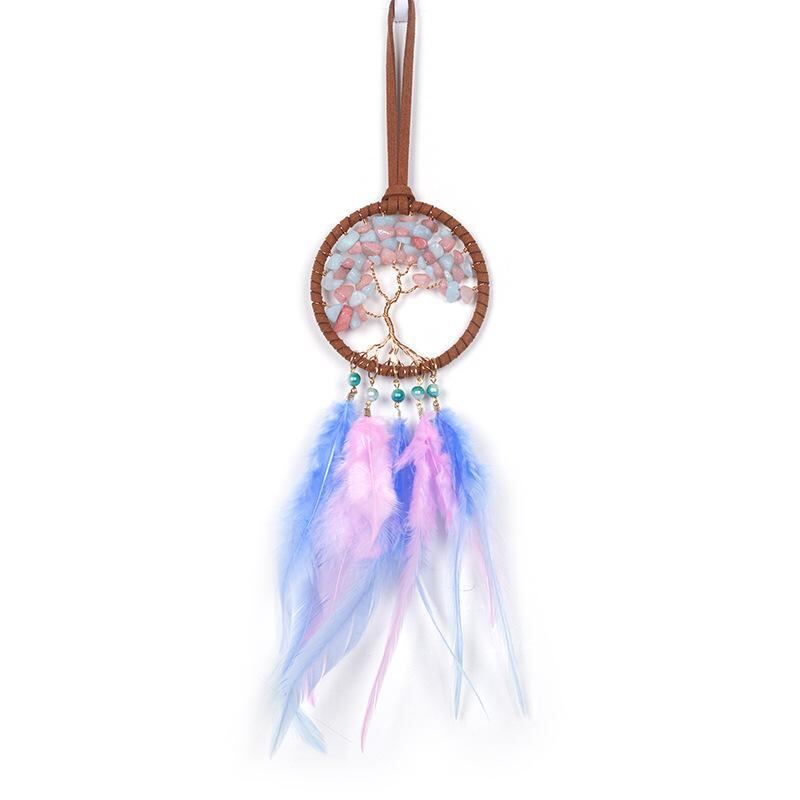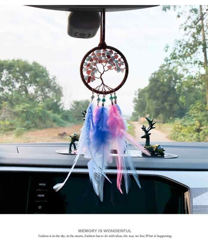 カーアクセサリー 生命の樹 ピンク フェザー ストーン 車用 吊り下げ飾り ルームミラー 車内装飾 インテリア 旅行 記念品 お土産