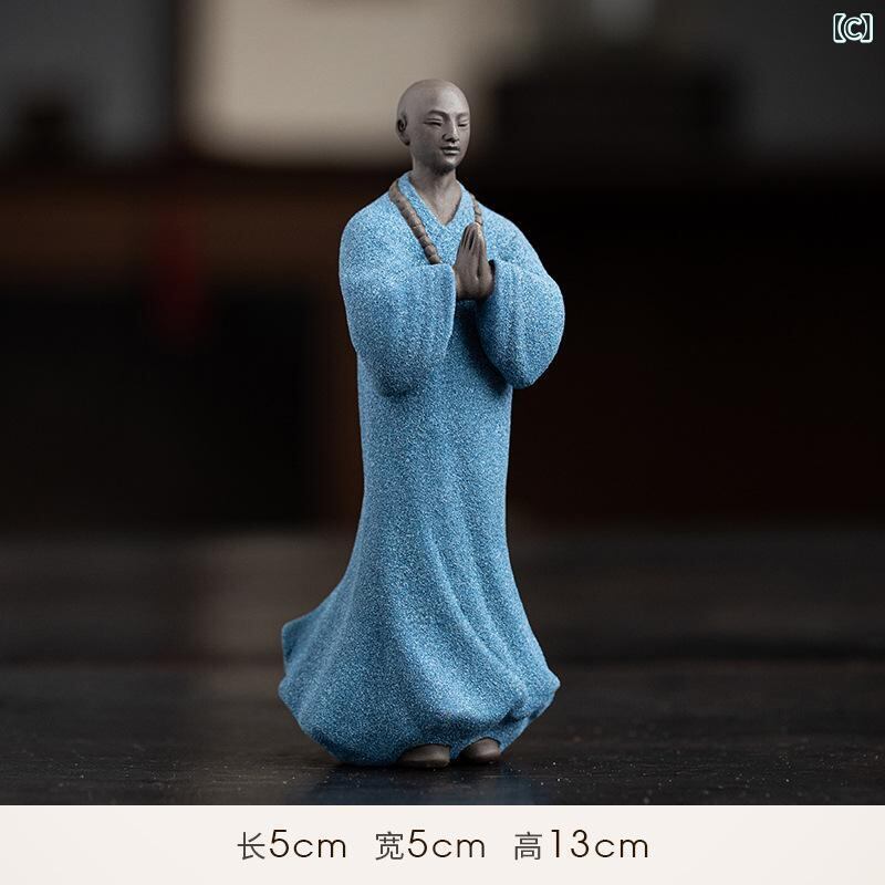 置物 小坊主 紫砂 陶器 新中式 禅風 オブジェ 室内装飾 リビング 玄関 和室 盆栽 ミニチュア庭園 水槽 アクアリウム 赤 グレー 青