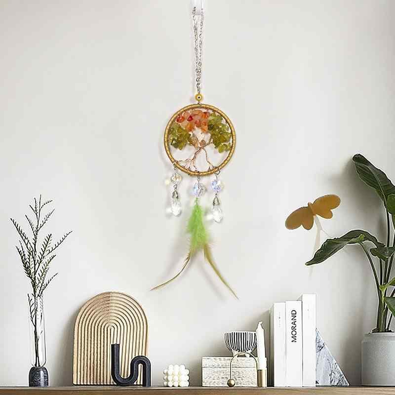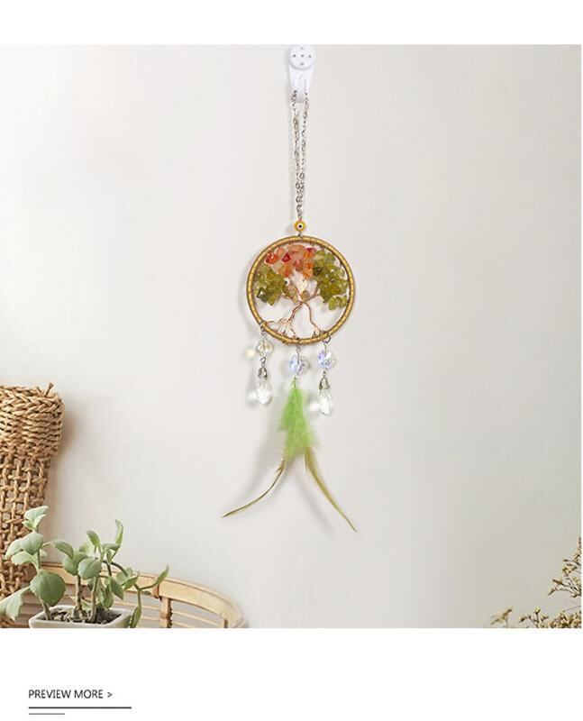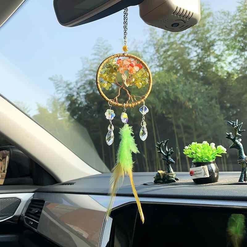 チャーム 生命の樹 カラフルストーン ローズクォーツ パワーストーン アイモチーフ 幸運 お守り キーホルダー 車載 バックミラー 飾り プレゼント