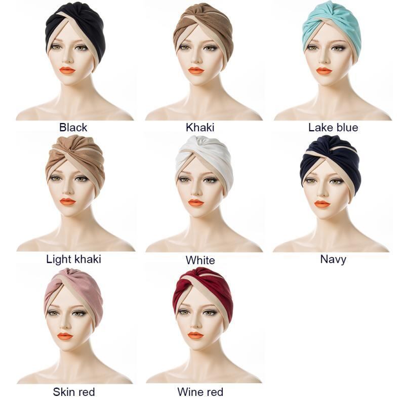 ターバン レディース 女性用 コットン 綿 フロントクロス バイカラー ツートン 2色使い プリーツ デザイン オールシーズン 普段使い カジュアル 帽子 ハット