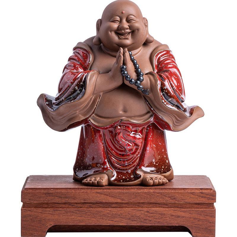 置物 陶器製 布袋様 弥勒仏 笑い顔 開運 招福 金運 縁起物 中国風 禅 インテリア 癒やし リビング 玄関 飾り棚 オブジェ 和室 書斎 プレゼント 新築祝い 引越し祝い