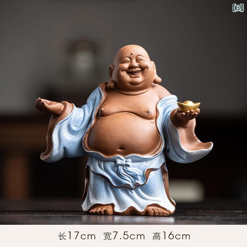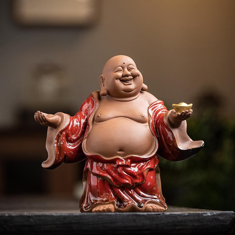 仏像 新中華風スタイル 陶器 弥勒仏 ほてい様 笑い仏 ラッキーアイテム 開運 金運 財運 置物 オブジェ インテリア飾り 家庭 自宅 オフィス 飾り棚 ディスプレイ 装飾品 ギフト 贈り物