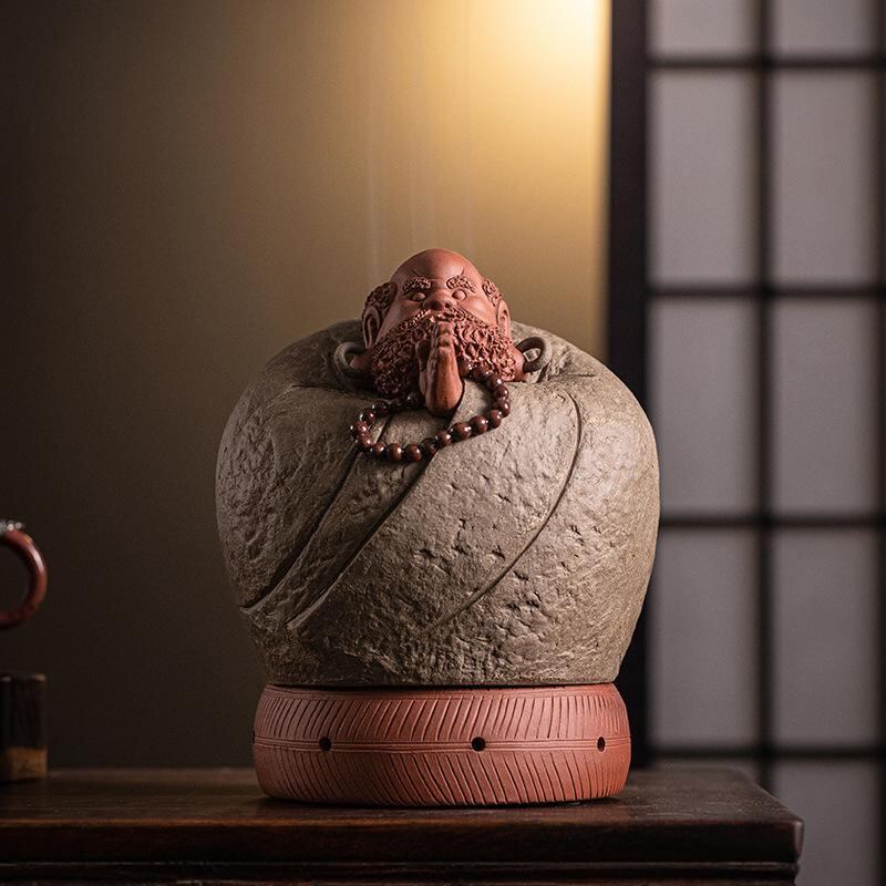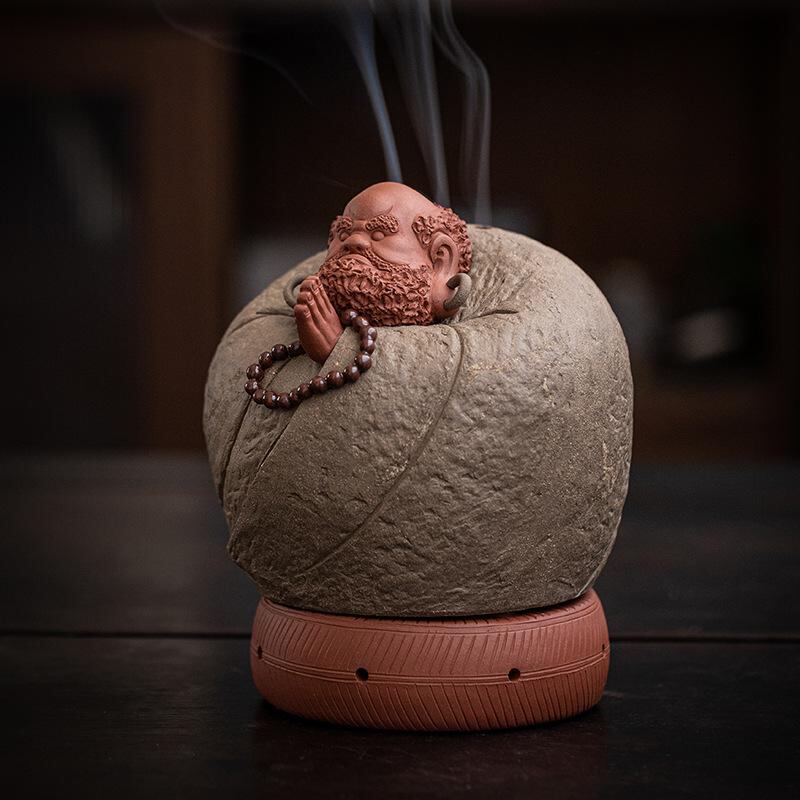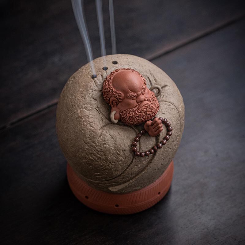 香炉 達磨 陶器製 人物像 家庭用 室内用 中華風 禅スタイル 置物 渦巻き線香用 艾柱用 檀香用 瞑想 ヨガ 癒し リラックス アロマ インセンスホルダー