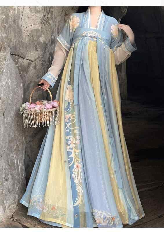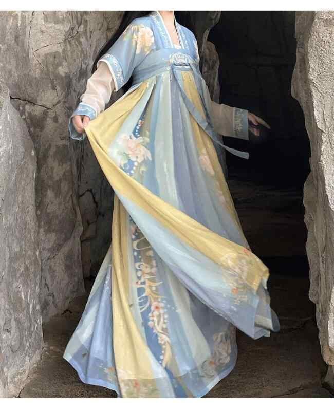 漢服 レディース オリジナルデザイン 古風 斉胸襦裙 ハイウエスト 巻きスカート ラップデザイン プリント柄 彩り豊かな伝統衣装