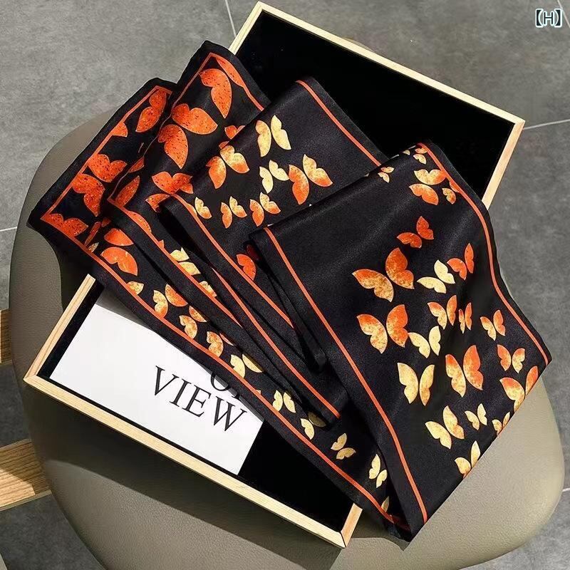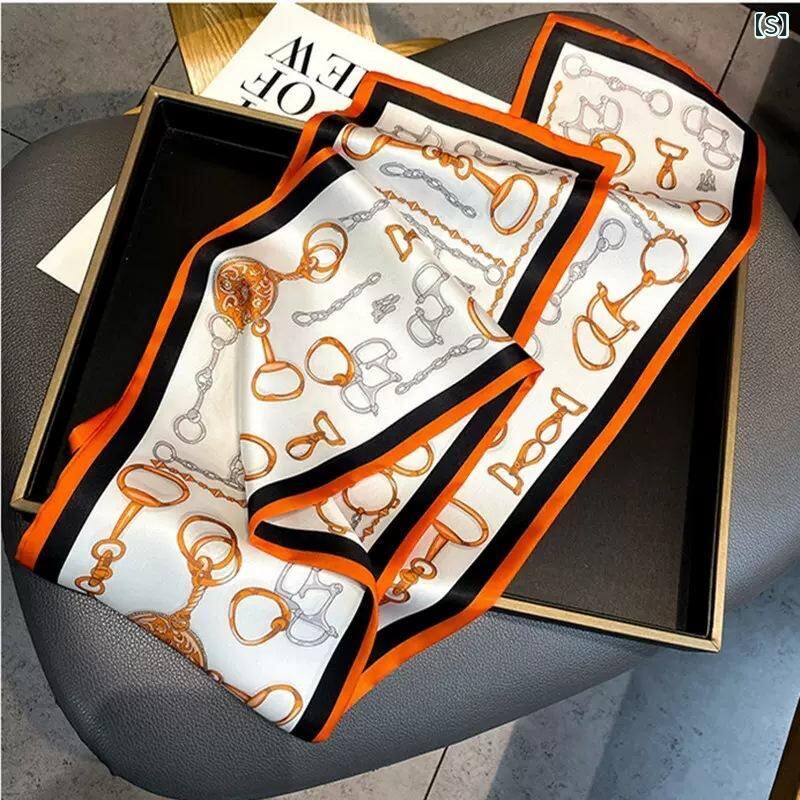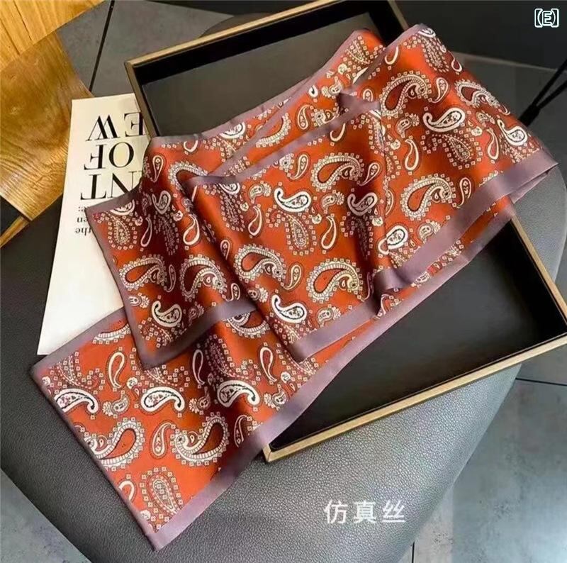 スカーフ レディース 細長ロング シルク リボンタイ エレガント 両面 サテン 光沢 高級感 なめらか 多機能 多用途 オフィス ビジネス 通勤 普段使い ヘアアクセサリー バッグチャーム グリーン系 ダークグリーン