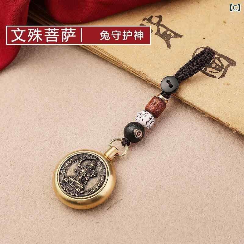 キーホルダー 真鍮 十二支守護神 回転式 手編み紐 車用 ストラップ バッグチャーム 開運 縁起物 お守り ギフト 誕生日 記念日 プレゼント
