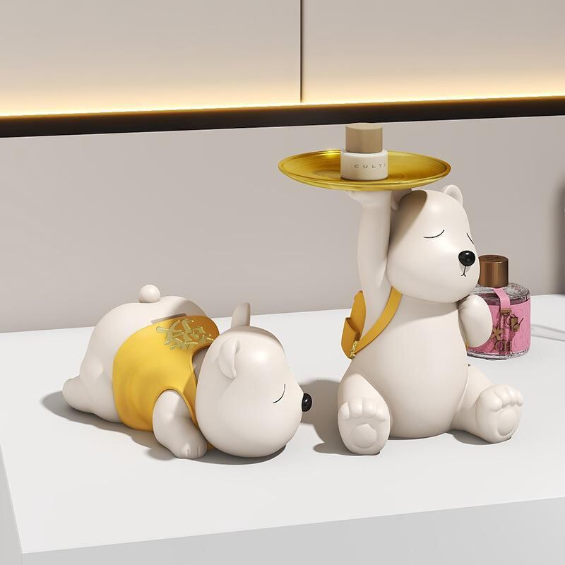 卓上収納 開運招福クマ 小物入れ デスクオーガナイザー インテリアオブジェ 玄関 リビング テレビ台 飾り 樹脂製