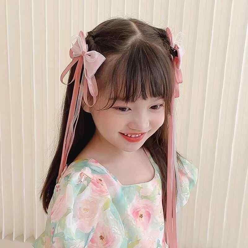 ヘアクリップ 子供 女の子 ベビー かわいい 手作り リボン 蝶々結び 飄帯 フリル タッセル フリンジ 中国風 中華風 民族風 古風 レトロ 漢服 編み込みヘアアレンジ 髪飾り