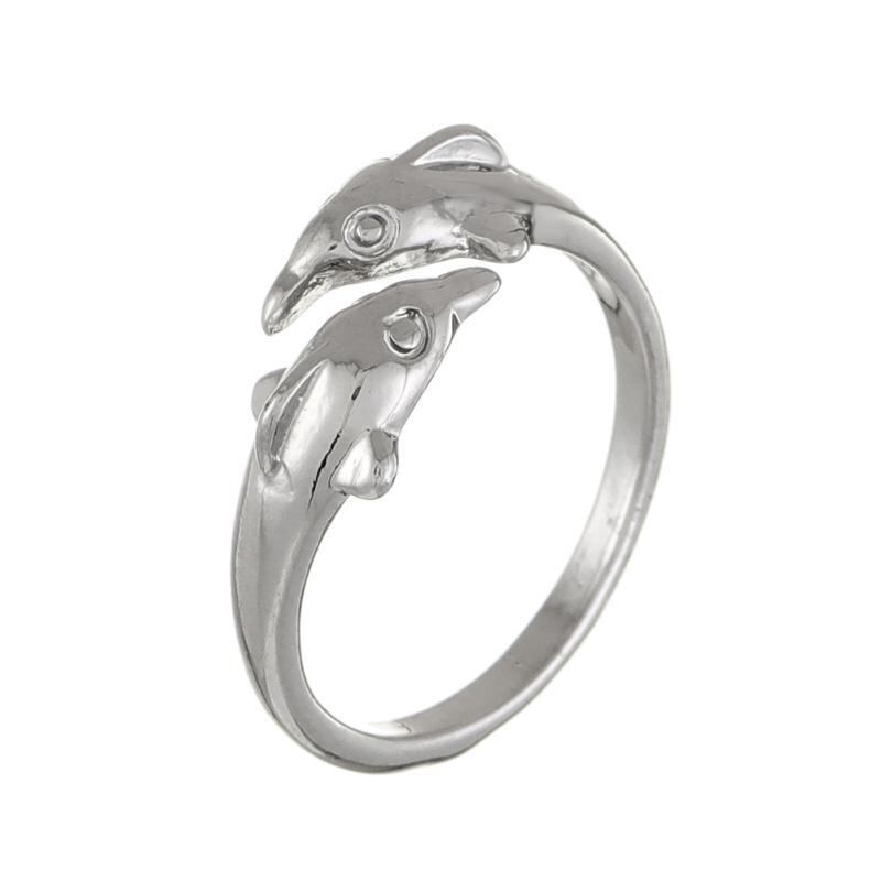 リング 男女兼用 ユニセックス 魚モチーフ フリーサイズ オープンリング 人差し指リング レトロ ヴィンテージ 個性的 トレンド かわいい カップル ペア 親友 お揃い 指環 合金製 プラチナカラー
