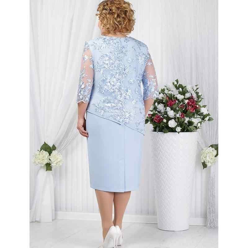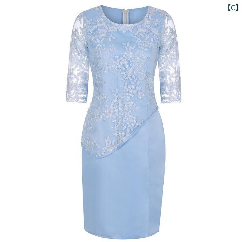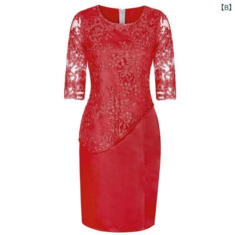 ワンピース レディース 大きいサイズ 体型カバー フェイクレイヤード ドッキング レース 切り替え 透かし編み 七分袖 ミニ丈 ハイネック ドレス パーティードレス 結婚式 お呼ばれ ポリエステル