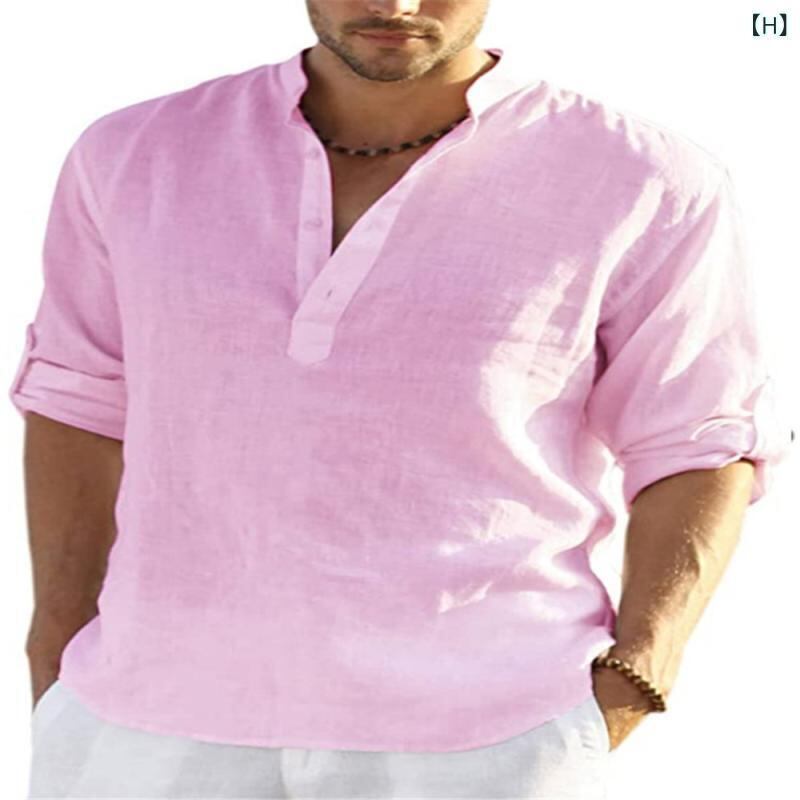 シャツ メンズ 長袖 スタンドカラー 無地 綿麻 ゆったり ビッグシルエット 通気性 普段使い カジュアル 春秋 トップス 多色展開