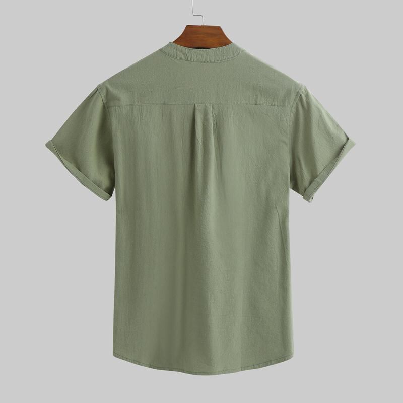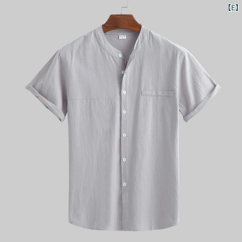 シャツ メンズ 半袖 スタンドカラー リネン 薄手 ゆったり 無地 吸湿速乾 ポケット付き 綿麻 夏 カジュアル 普段使い リゾート 清涼感 ホワイト ブラウン ライトブルー