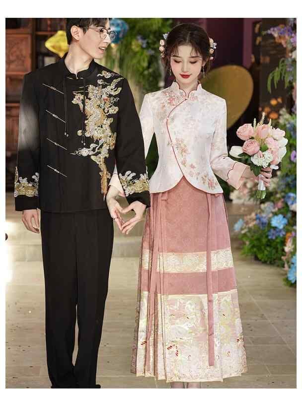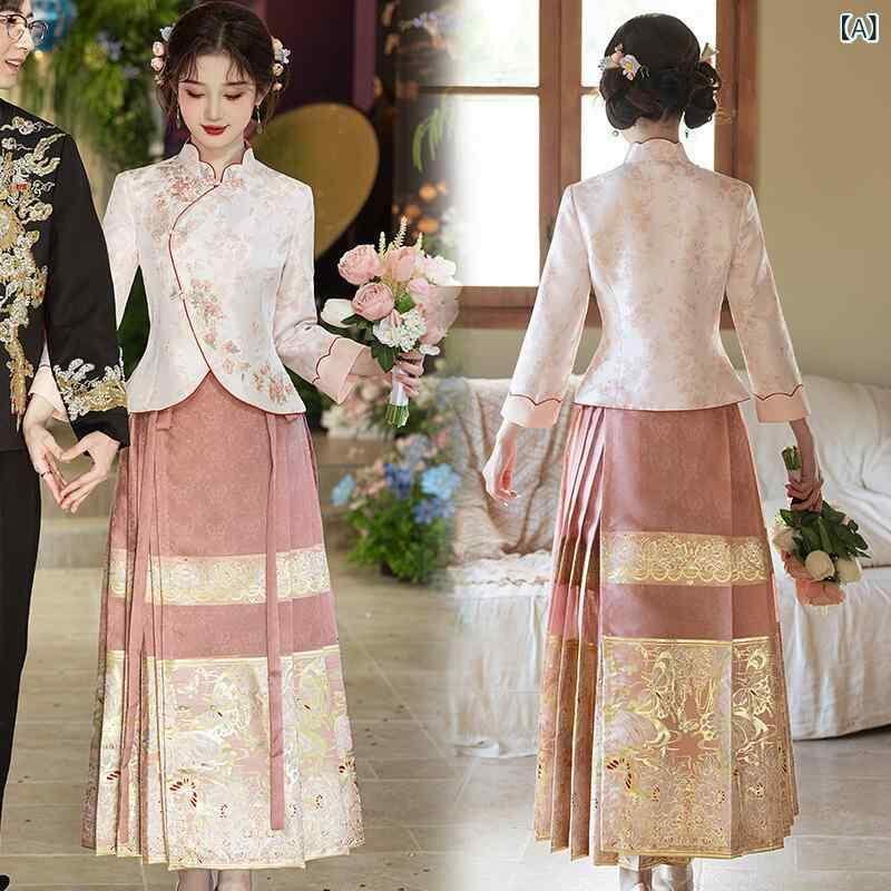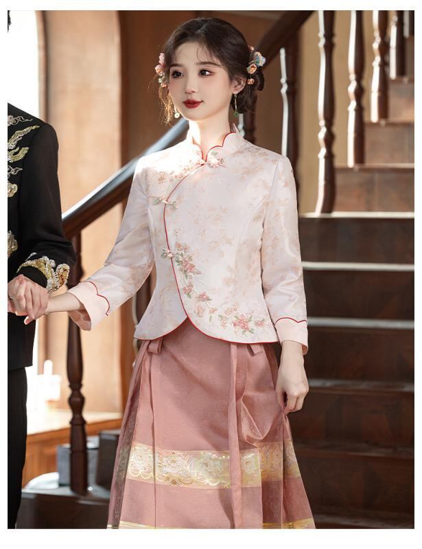 セットアップ レディース 馬面スカート 新中華風 モダンチャイナ フォーマルドレス 披露宴 お呼ばれ 結婚式 セレモニー 高級感 ピンク 花柄 プチサイズ 小柄な方 ポリエステル素材