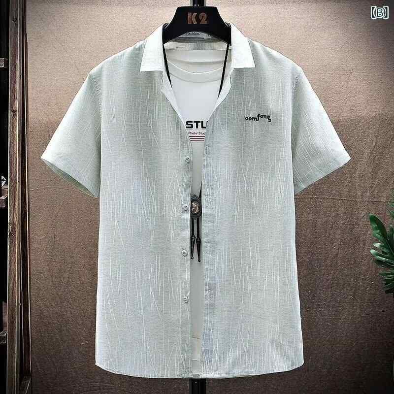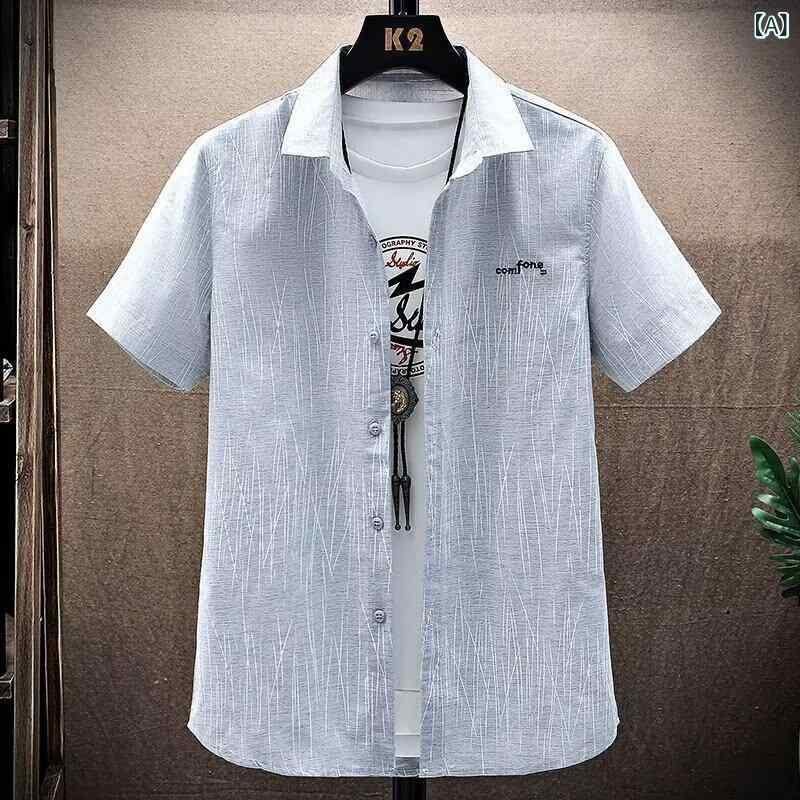 シャツ メンズ 縦ストライプ柄 半袖 レギュラーカラー 薄手 軽量 スリムフィット 綿混 ポリエステル ビジネス カジュアル オフィス 通勤 普段使い 夏 グレー グリーン