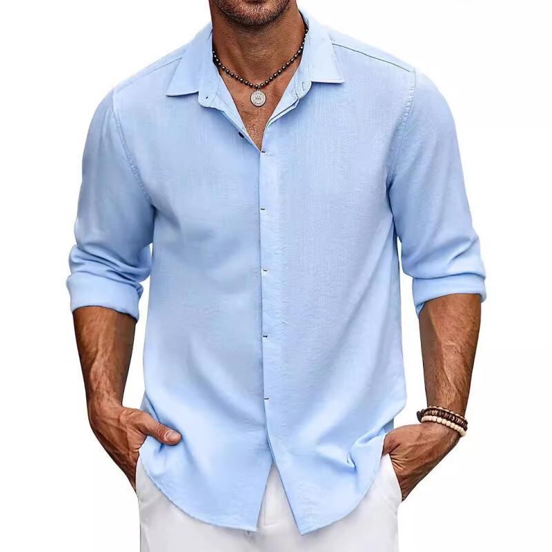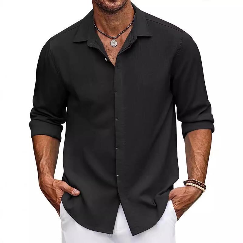 シャツ メンズ 無地 パッチワーク 切り替え カジュアル 開襟 長袖 襟付き ゆったり 綿 通気性 普段使い タウンユース