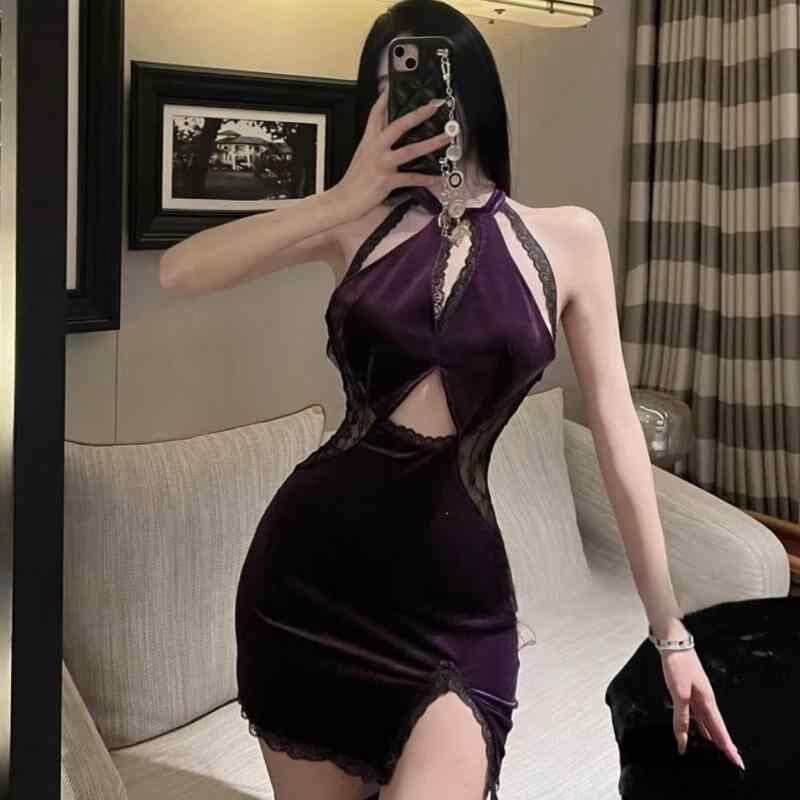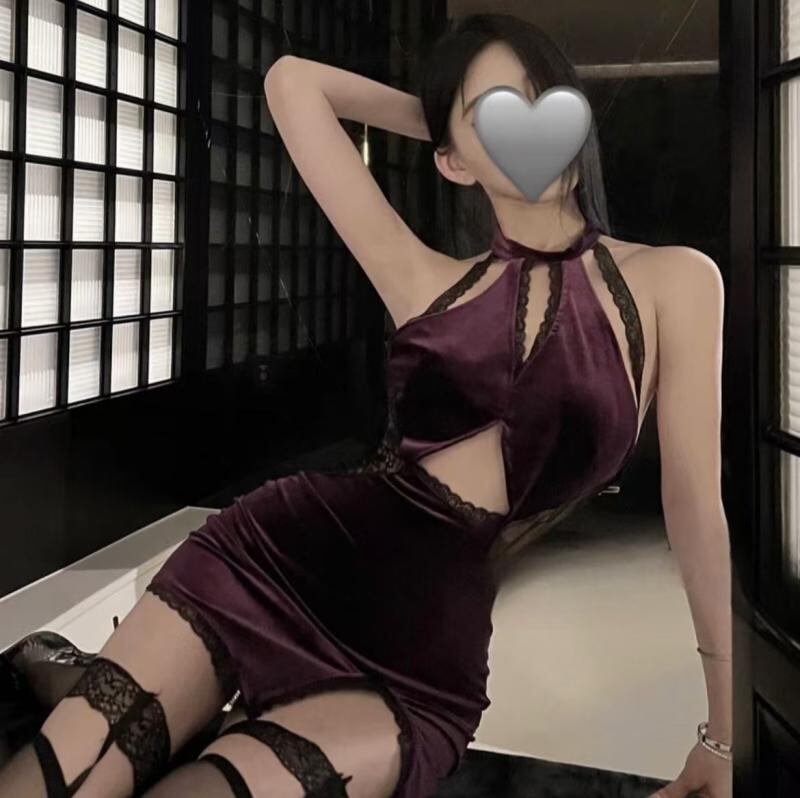 チャイナドレス レディース ホルターネック シースルー 透け感 オープンクロッチ 股開き ボディスーツ 連体ワンピース セクシー 魅惑的 ナイトウェア コスプレ 制服衣装 ルームウェア イベント服 ポリエステル 紫 パープル