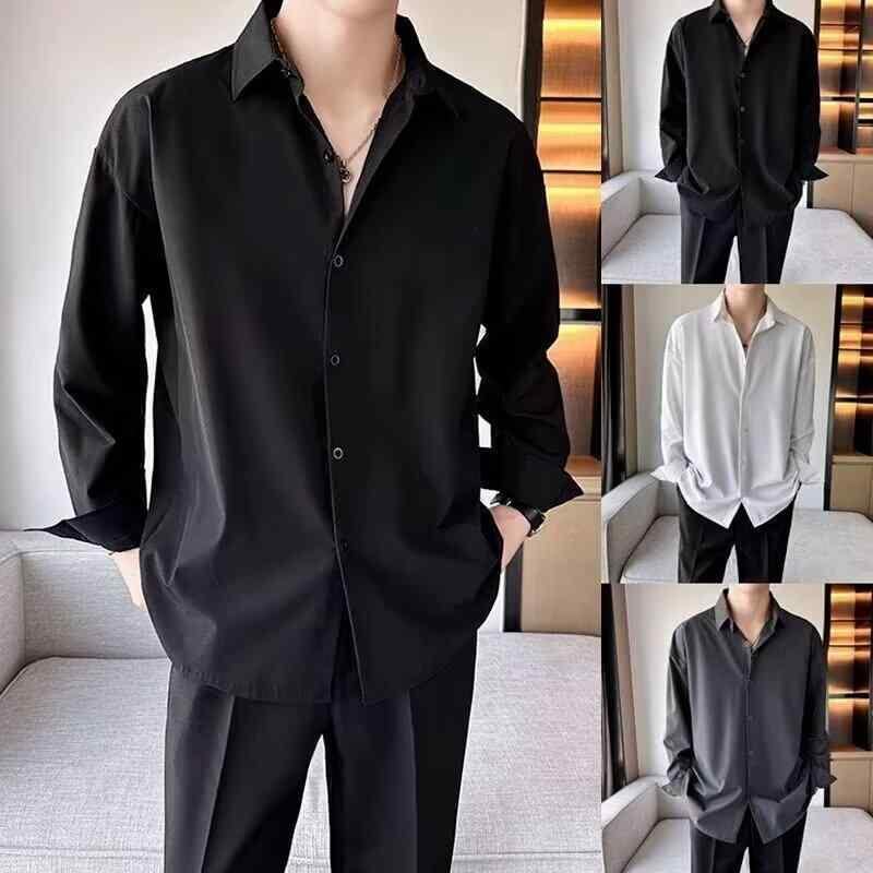 シャツ メンズ 半袖 接触冷感 ドレープ感 ゆったり リラックスフィット ルーズシルエット シワになりにくい 薄手 夏 カジュアル トップス 羽織り ブラック ホワイト グレー