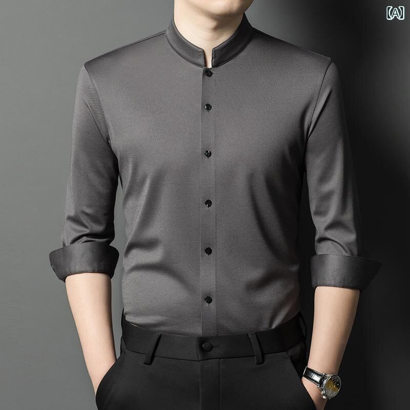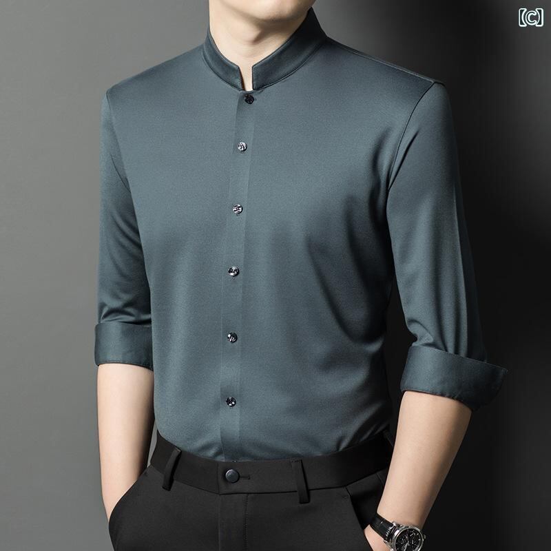 ・カテゴリ: シャツ・性別: メンズ・対象年齢層: 成人 (若年層、中年層、老年層)・スタイル: ビジネス、通勤・タイプ: プルオーバー・フィット: レギュラーフィット・ネックライン: スタンドカラー・袖丈: 長袖・柄: 無地・厚さ: 普通・デザイン詳細: 配色、ボタン、刺繍・素材: ウール30%以下・生地名: 柔らかな肌触りの高級生地・生地特徴: 高級感、肌触りの良さ・生地番手: 100・機能: 通気性、防シワ、抗菌、耐摩耗、防汚、吸湿速乾、高色堅牢度・加工: 起毛・着用シーン: デイリー、ビジネス、カジュアル、ホームウェア、旅行、デート、食事会、結婚式・カラー展開: グレージュ、レッド、グリーン、ネイビー・サイズ展開: 165cm、170cm、175cm、180cm、185cm、190cm・誤差: 1〜2cm