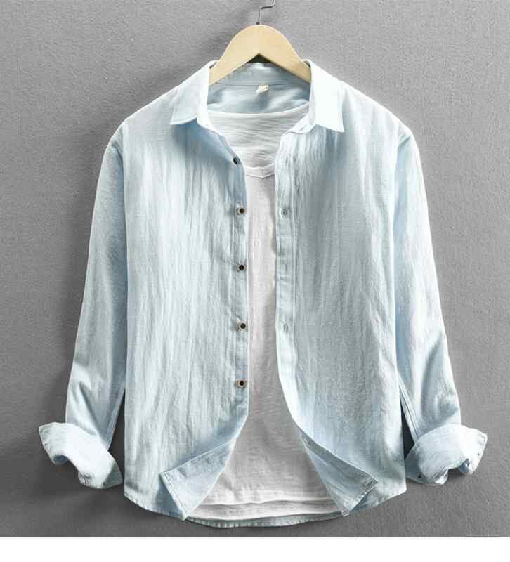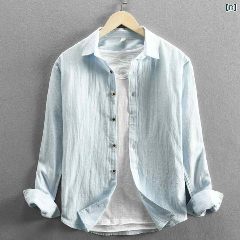 シャツ メンズ 綿麻 長袖 無地 カジュアル 普段使い スクエアカラー ビッグシルエット ゆったり ルーズフィット 通気性 ウォッシュ加工