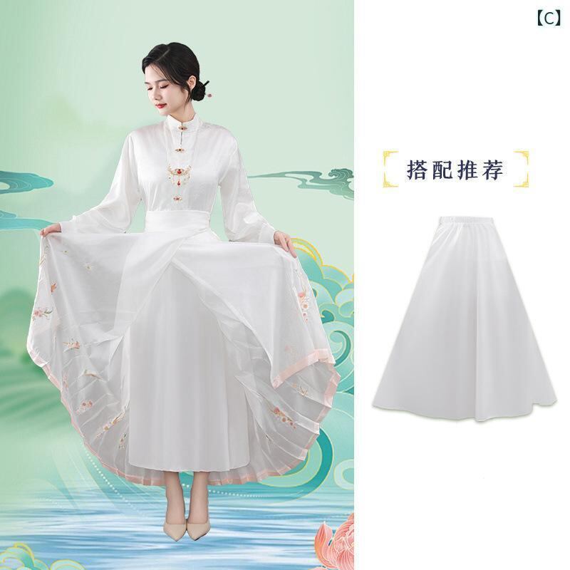 ペチコート 白 静電気防止 透け防止 シースルー防止 インナー アンダースカート スリップ 漢服 馬面スカート ハーフスカート ウエストインナー