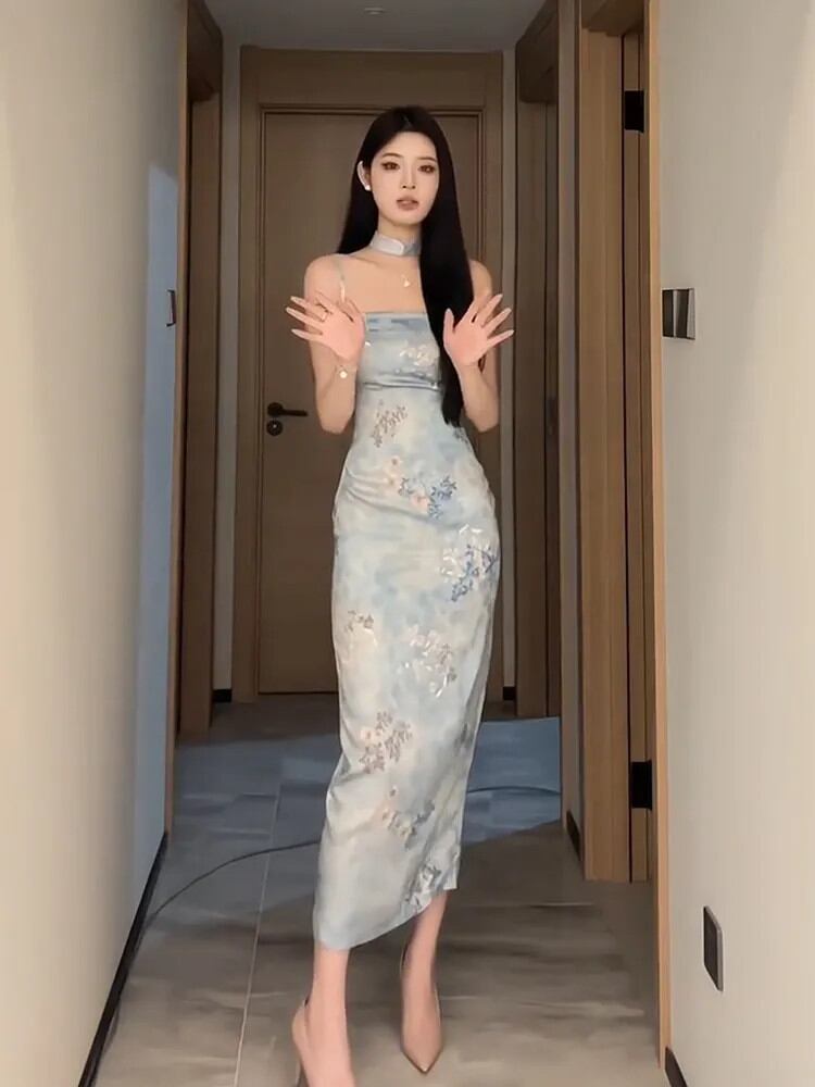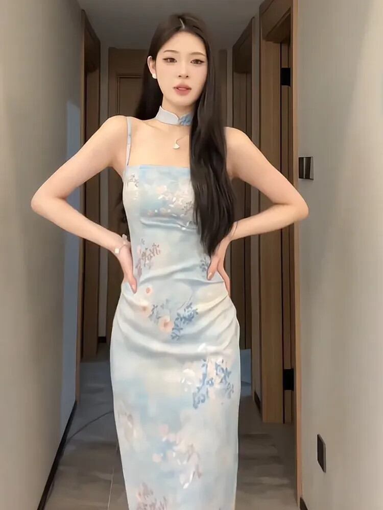チャイナドレス ワンピース レディース 大きいサイズ 新中華風 レトロモダン キャミソール ロング丈 ジャガード織り タイトシルエット 上品 エレガント 夏 ぽっちゃりさん向け ポリエステル ハイウエスト