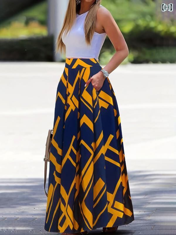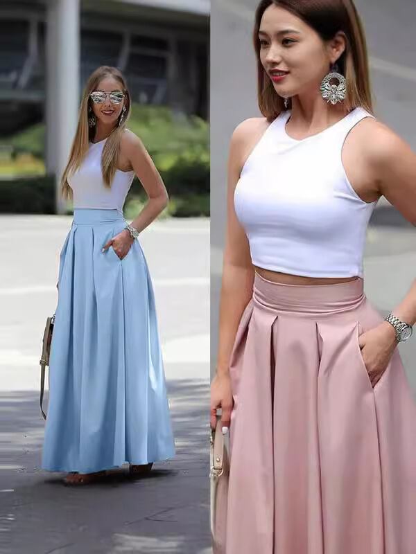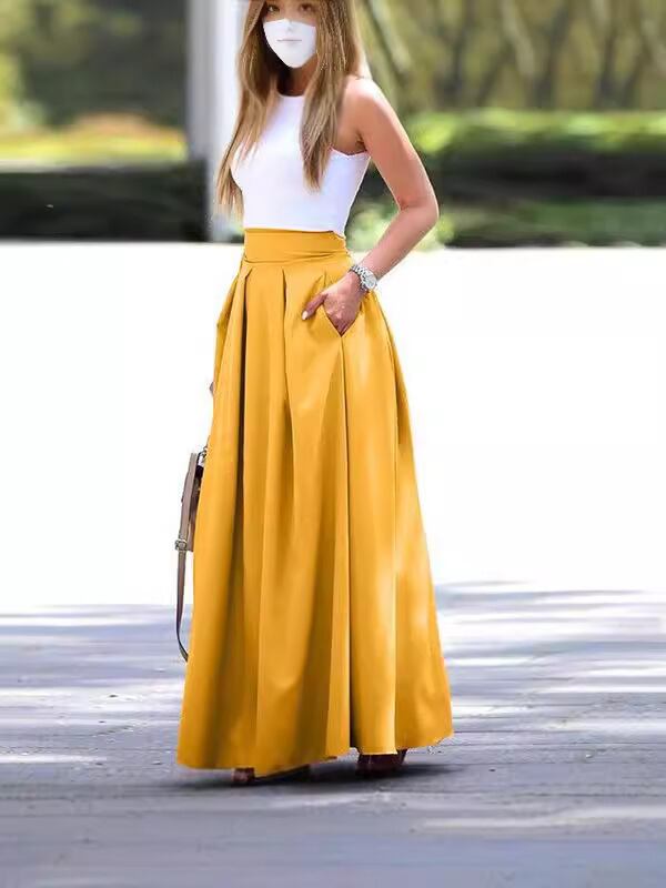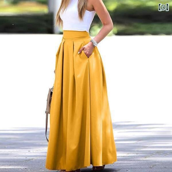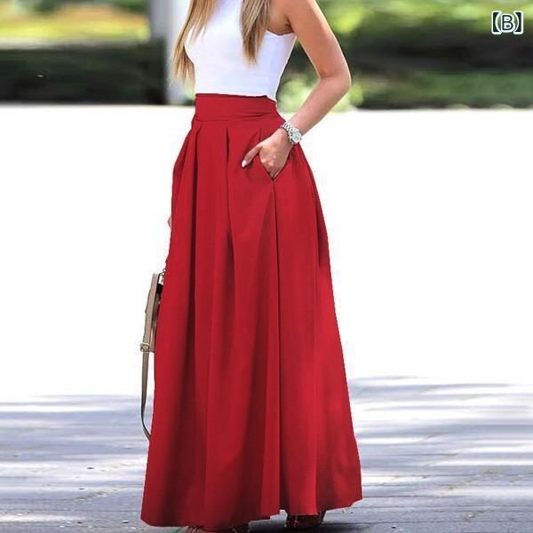 半身スカート レディース 大きいサイズ プリーツ ロング ハイウエスト Aライン 無地 ポリエステル オフィス カジュアル 通勤 きれいめ エレガント