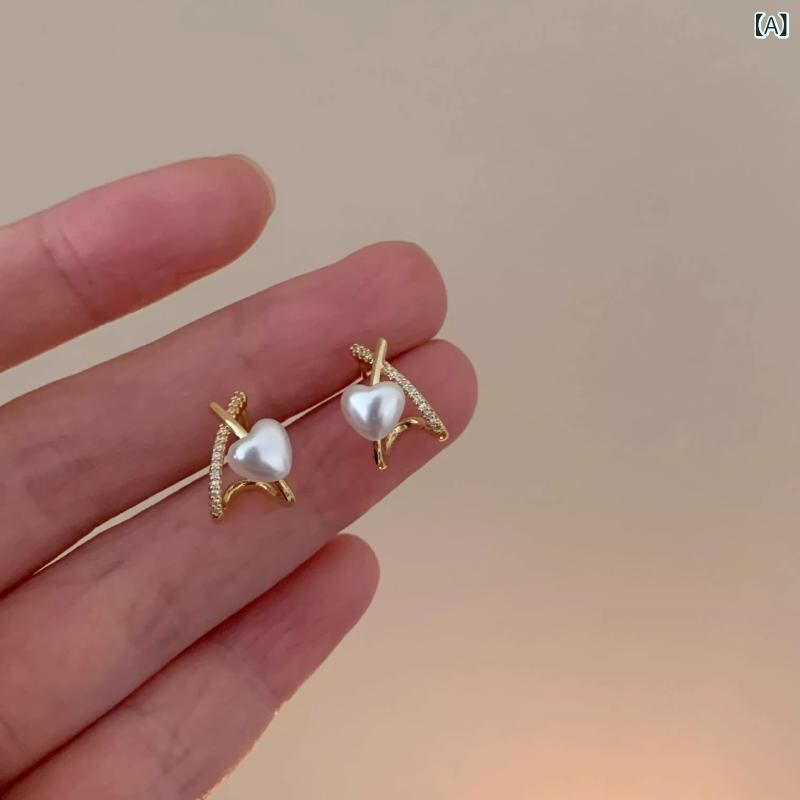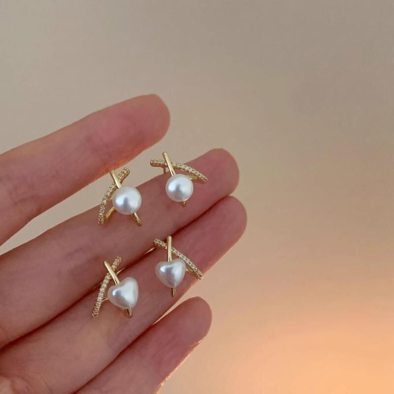 ピアス レディース 女性用 ハート パール 真珠 クロス 交差 デザイン 個性的 ユニーク シンプル 上品 エレガント 繊細 高級感 メタル素材 かわいい 耳元アクセサリー 普段使い オフィス デート パーティー ファッション
