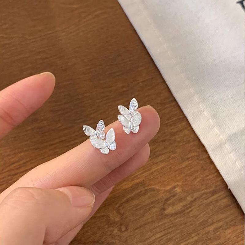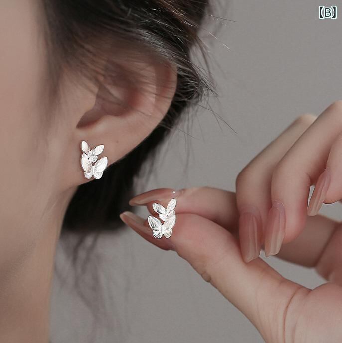 ピアス レディース ダブルバタフライ 蝶々 スタッドピアス レトロ アンティーク調 上品 エレガント 繊細 高級感 ゴールド シルバーカラー シルバーポスト デイリー 普段使い 万能