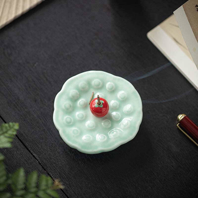 香炉 線香立て お香立て 陶器製 セラミック 室内用 禅風 柿 蓮 レトロ アンティーク調 おしゃれ 置物 縁起物 開運 吉祥 瞑想 リラックス 和モダン