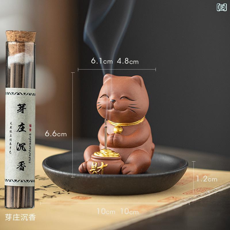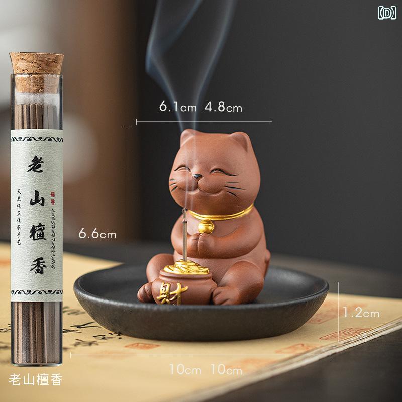 香炉 紫砂 開運 ミニ招き猫 線香立て お香立て スティック香立て 香皿 禅風 癒し 香道 インテリア 置物 自宅用 室内 レトロ 和モダン アロマ インセンスホルダー