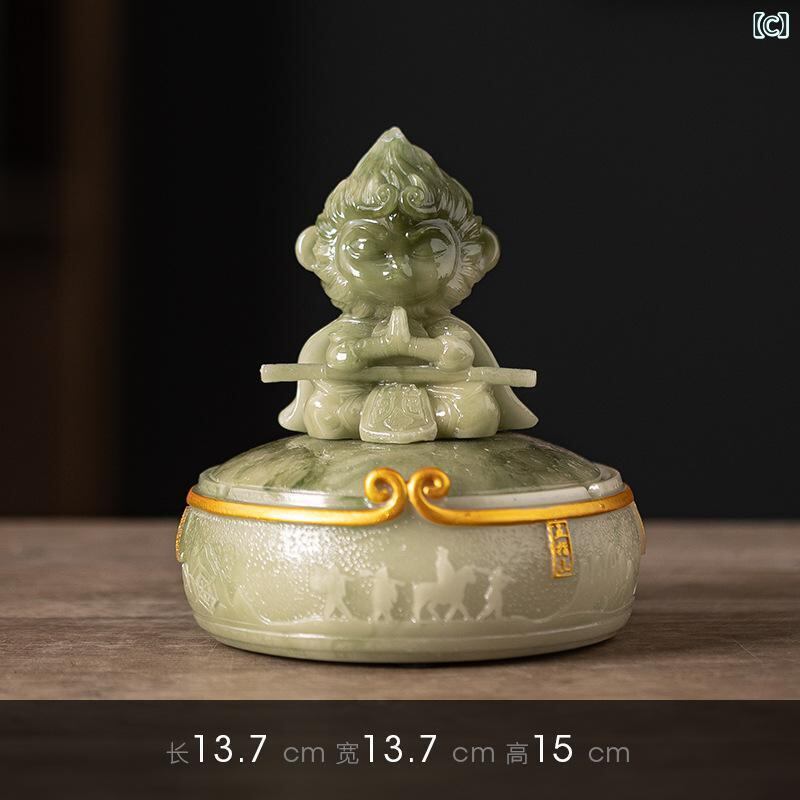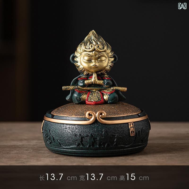 灰皿 孫悟空 アッシュトレイ 防風 飛び散り防止 樹脂製 ユニーク おしゃれ 高級感 レトロ モダンチャイニーズスタイル インテリア用 金緑 ブラック ジェードグリーン