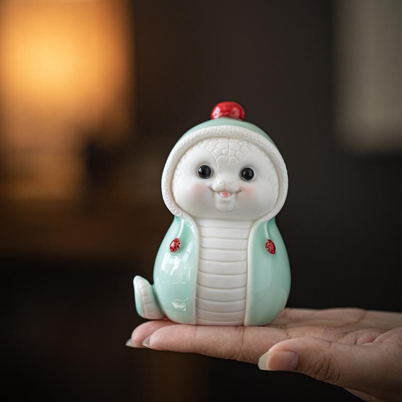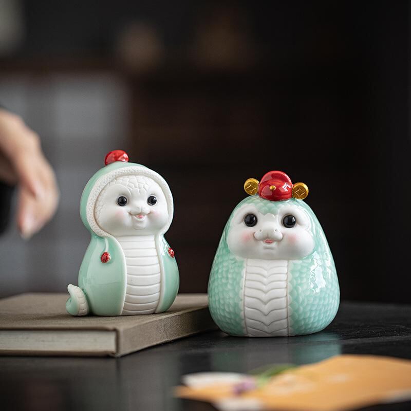 置物 かわいい 陶器製 蛇 干支 巳 縁起物 吉祥物 金運招来 ラッキーアイテム 風水 インテリア 室内装飾 デスクオブジェ 開運 プレゼント ギフト 工芸品