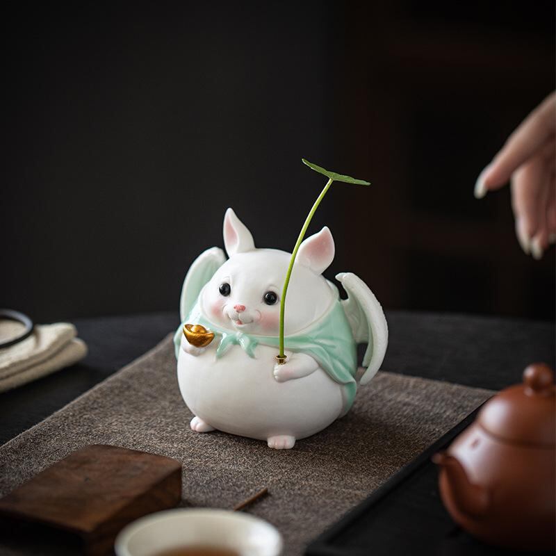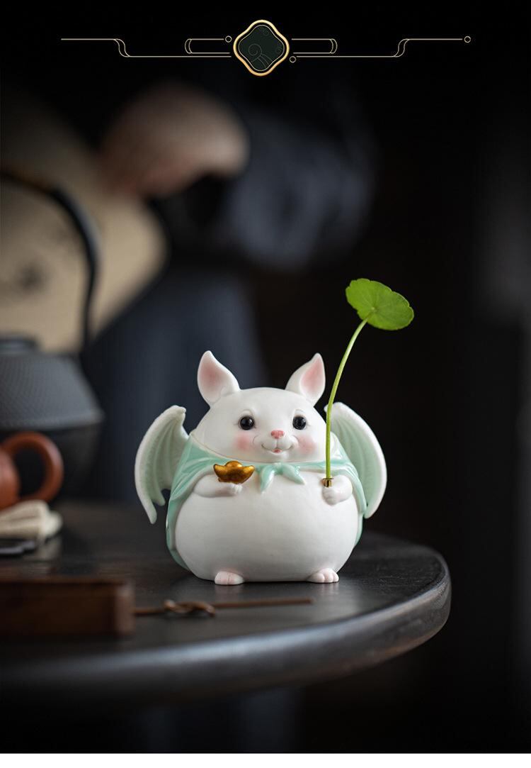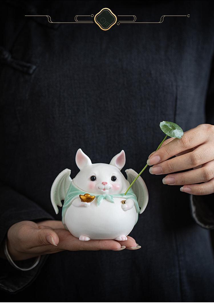 置物 陶器 コウモリ 開運招福 金運招来 ラッキーアイテム リビング 玄関 テレビ台 インテリア オブジェ 和モダン 新築祝い 開店祝い 記念品 プレゼント